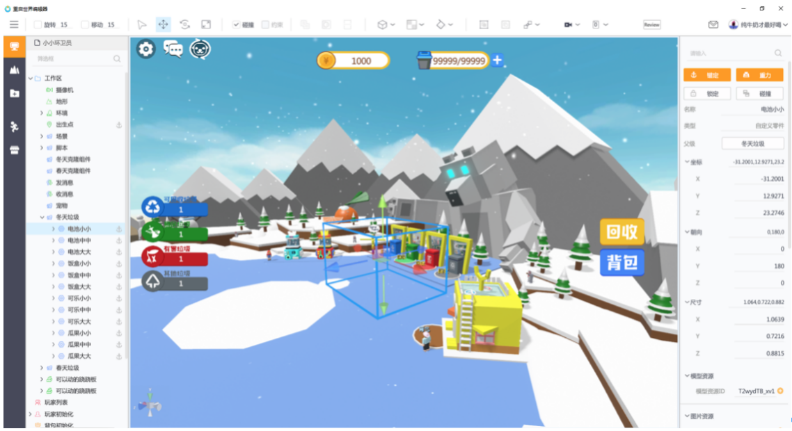 《重启国际》的物理引擎技能已取得几十项技能专利,可以拟真实际国际中的各种力学,如磕碰、重力,高空加快下落,车辆碰击等,无需代码即可满意不同构思游戏的制造需求,乃至可使用于仿真模仿、修建、计算机等范畴。